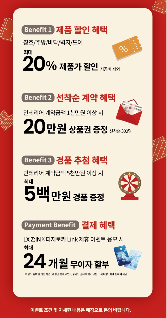 이번 이벤트는 혼수·이사 수요는 물론 노후 창호 교체 수요가 몰리는 봄철 인테리어 성수기를 앞두고 고객들이 보다 합리적인 조건으로 LX Z:IN의 제품들을 경험할 수 있도록 기획됐다.
