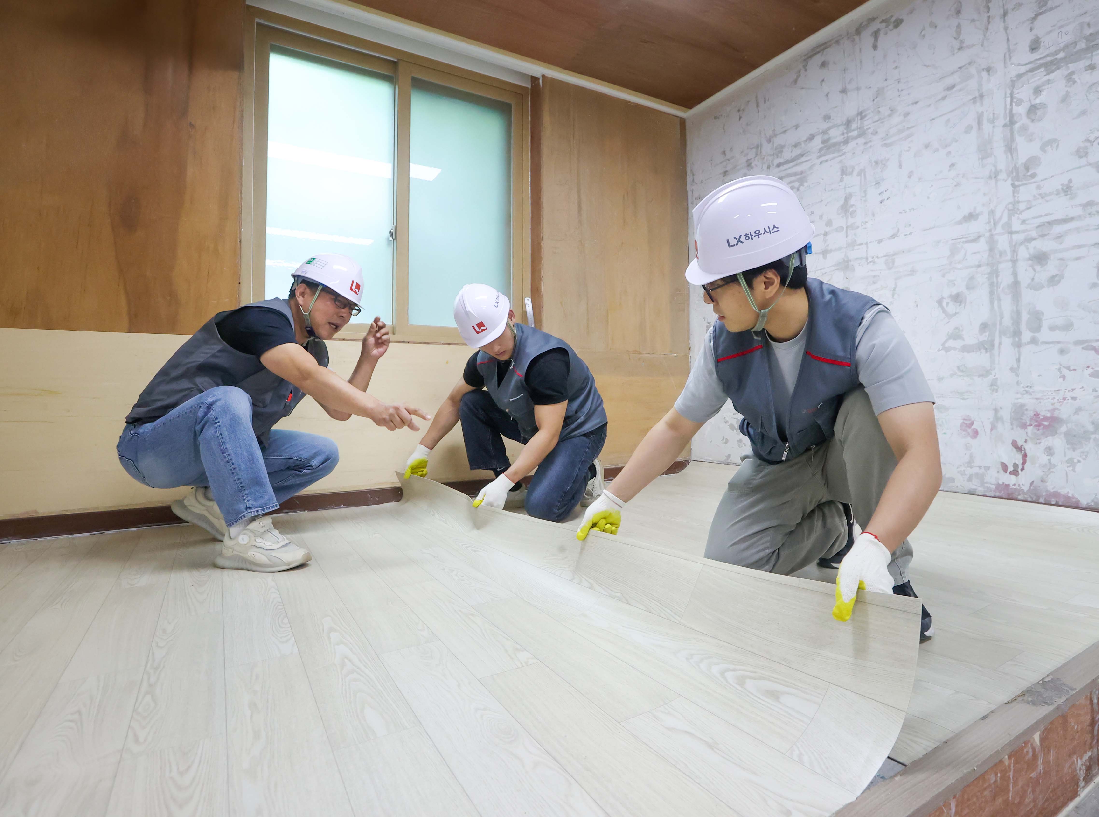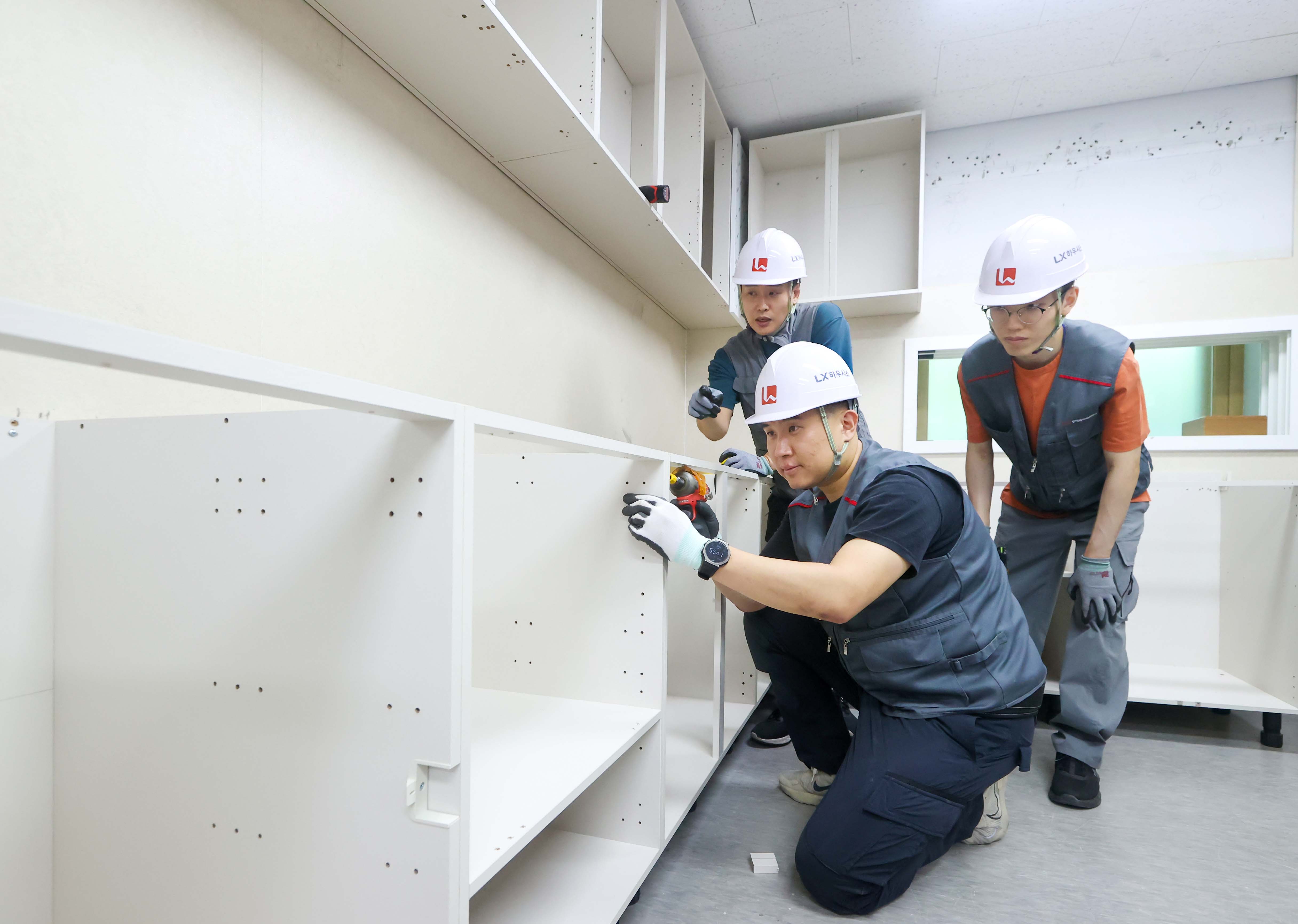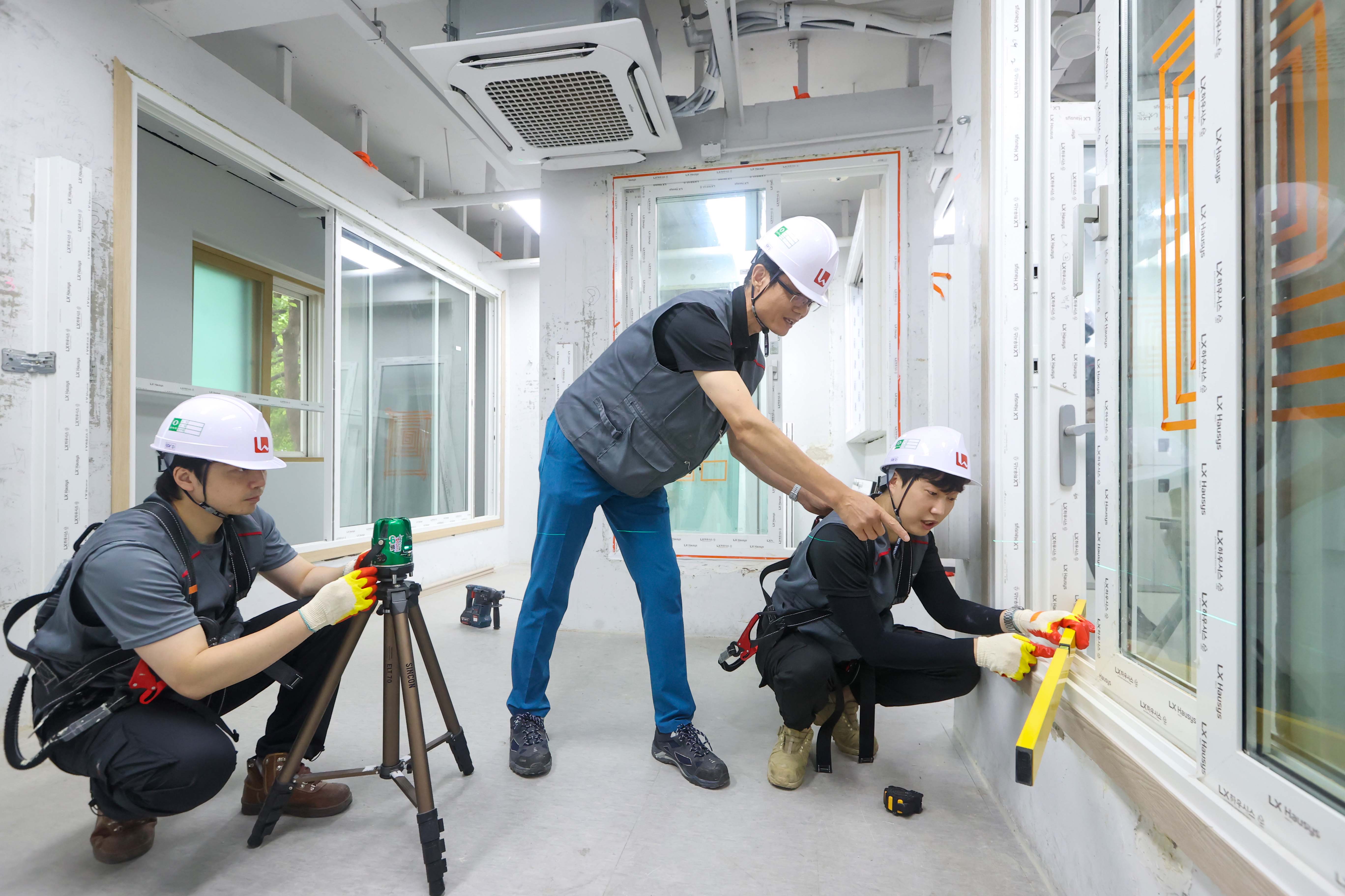 경기도 평택시에 위치한 'LX Z:IN 인테리어 아카데미'에서 진행되고 있는 창호 시공 실습 강의 모습