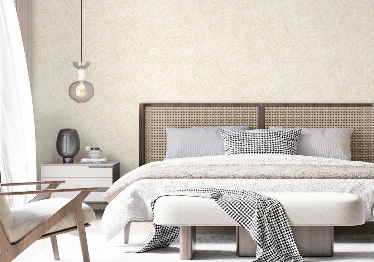 아늑한 침실 공간을 원한다면 따스한 아이보리 컬러와 조화를 이루는 직물 패턴을 선택해보세요.